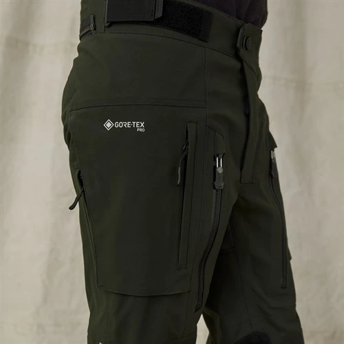 It’s got a Gore-Tex, 3-layer, Pro Shell chassis, Level 2 D3O armour in the hips and knees, Superfabric at the knees, copious venting, numerous pockets, waterproof zips, suede panels up the inside of the legs, an anti-slip panel on the seat and more adjusters than you can shake a stick at.