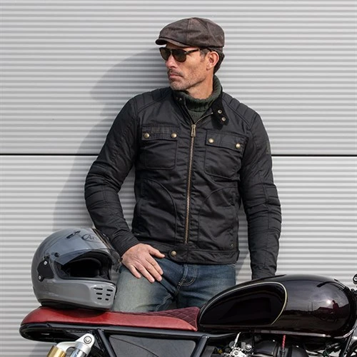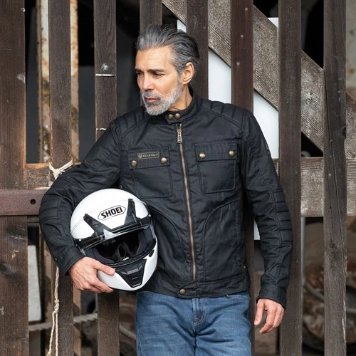 The Belstaff Roberts is a shorter, sportier-style jacket made from a fabric that is known as Tech Wax. The material is equivalent to a waxed cotton of about eight ounces. The fabric is waxed for water resistance but the real waterproofing comes courtesy of a Miporex membrane. The jacket is fitted with CE approved, D3O armour in the elbows and shoulders. There’s also a pocket for a back protector. On the outside of the jacket you get two flap pockets and two zip pockets. There’s a side-facing pocket inside the jacket. For a more detailed size chart, please see here
