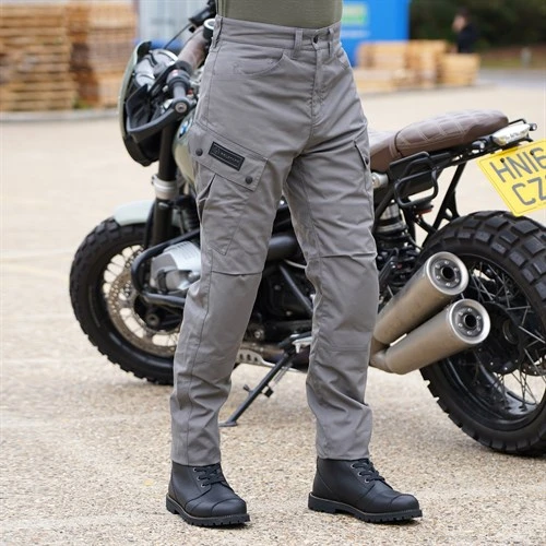 The Typhoon has a reasonably relaxed fit. Not relaxed in the way that motorcycle cargo pants used to be; rather they’re relaxed in comparison with, say, a Rokker jean. You get two jean-style hand pockets, two cargo pockets on the thighs with rubber covered poppers, and one rear pocket. Walk into a coffee shop or a restaurant wearing a pair of Typhoons, and nobody would know that you’re wearing a protective, motorcycle pant.