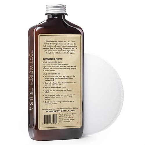 Chamberlain’s Leather Milk Formula No. 3 is actually a water protectant. It is a natural medley of deeply penetrating oils and waxes that both conditions the leather and protects it from the elements. It is especially designed to protect leather goods from harsh weather conditions such as rain and snow. It works on clothing, boots and indeed any leather equipment that gets to live outdoors. It comes with a cotton terry pad, which should be used for the best results. You should read the instructions on the back of the bottle first. We know some people will get confused by the fact that it says leather on the bottle, but it doesn’t go well with cereals or in tea.