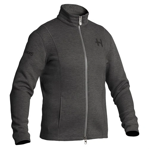 Now Halvarssons term this fleece a mid layer, and although you could wear it on the bike under a jacket, we think it’s a bit thick for that. Personally, we think that this is the kind of jacket that you’re more likely, we feel, to wear when you’re off the bike. But however you decide to wear it, this is a very superior kind of fleece. It’s made from a synthetic material that is highly breathable yet has the soft handle of cotton. It’s knitted in a herringbone pattern, so it’s also a lot smarter than your average fleece. It’s going to do its job of insulating heat from the body very well indeed, but whether it’s wearable on the bike, well you’ll have to work that out for yourself