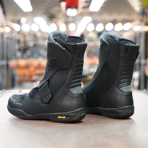 The Segrino is a shorter, touring-style boot, although with its fibreglass shin protector it’s much taller than any ankle boot. It’s a boot for the person who wants the protection of a full-height boot, but who still wants to be able to be able to walk around comfortably all day off the bike. The Segrino is shorter than, for example, a Daytona Roadstar but taller than a Daytona Arrow Sport or AC Dry. It is an in-between boot for those perhaps searching for the best of both worlds.