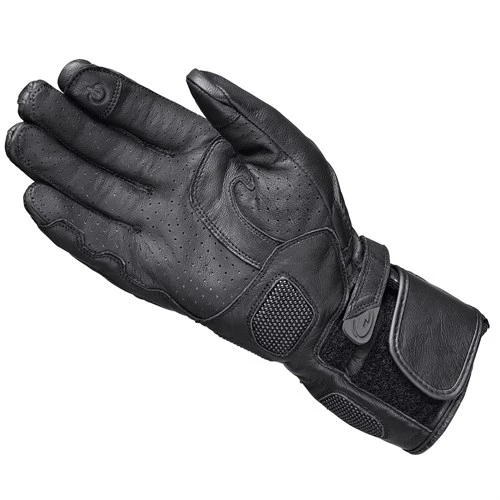 There is sometimes, often even, a trade-off with summer gloves. You get lightness and breathability, but in order to achieve this the manufacturers will sacrifice features, and even protection. The Held Touch glove is for summer. It is not a mesh glove, so it’s perfect for warm days, less so perhaps for those days where the temperatures are up in the thirties. By the same token, of course, they are much more wearable on a cool day than a mesh or heavily vented glove. But despite the fact that the Touch is a humble, summer glove it has an impressive and comprehensive spec.. You get a hard, leather-covered, knuckle protector, a kangaroo palm, flat-seam fingers, perforations on the palm, Superfabric on the palm and wrist, and accordion stretch for comfort. The glove is totally unlined for breathability; you also get a smartphone finger and thumb and a visor wipe. A humble summer glove this might be, but there’s nothing simple about the way it’s put together