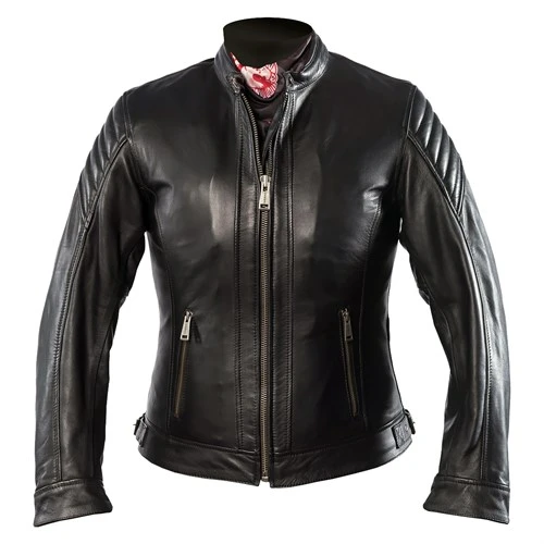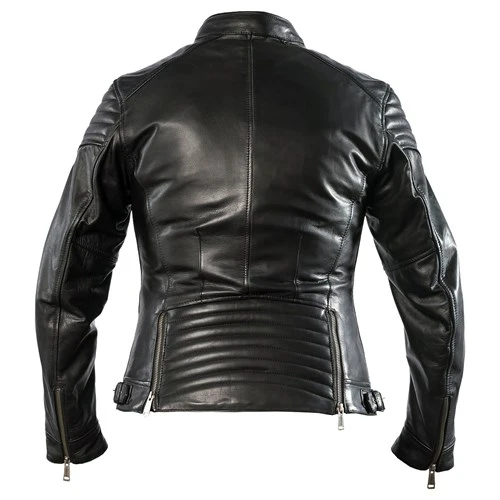 The Helstons Star ladies jacket is made from a lightish weight calfskin. The leather is between 0.9 and 1.1 mm in thickness. The leather is lightly oiled to give the surface of the leather a two-tone, shiny and matt finish. The jacket comes with an aluminium-lined, thermal gilet. The Star is also equipped with a fixed waterproof membrane. Full CE armour comes as standard, including in the back. There are adjusters on the hips and at the ends of the sleeves.