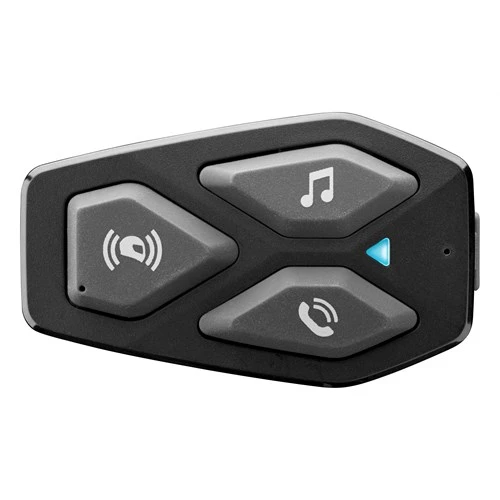 Now the UCOM 3 has a range of 500 metres, but if you want to talk to other riders you should go for the UCOM 4. In reality, the 3 is designed for rider-to-pillion communication, and not much more. The battery has a life of up to 10 hours. And the unit can be charged up in just 3 hours. In the pack you get a boom microphone for use on a flip-lid or open-face helmet. Or there’s a button microphone for a full-face. One thing that the 3 doesn’t have that the 2 did is an FM radio with an RDS function