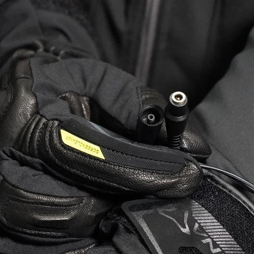 But up to this point we have not liked any of the Macna heated gloves designed to work with the Centre jacket. The main issue has been that they all had thick, winter cuffs that could only be worn outside the sleeve of a technical jacket. And that just didn’t work, because the connecting lead from the glove had to go around an s-bend in order to reach the socket on the sleeve of the heated jacket.