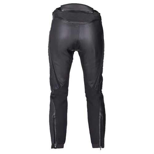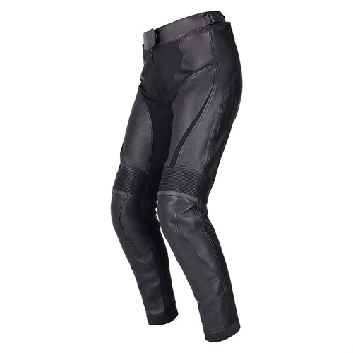 The Laura pant is the matching lower half for Richa’s new-for-2022 ladies leather, sports-touring suit. The suit is made from a cowhide interspersed with stretch panels. There are perforated areas above the knees for hotter weather; they also come with a removable, thermal liner for colder weather. The armour comes courtesy of D3O that is fitted in the knees. Hip armour does not come as standard, but we are fitting it at no extra cost because we think the pants should have them. You get concertina stretch above the knees, but also at the back on the waist band and this will make a difference when the top and bottom are zipped together. There’s an adjustable belt at the waist. You also get short and long zips to allow the pants to be attached to any Richa jacket. Long zips at the bottom of the legs should allow the pants to be worn over a touring boot, although most people will wear their boots inside the legs of the pants. The pants have no pockets.