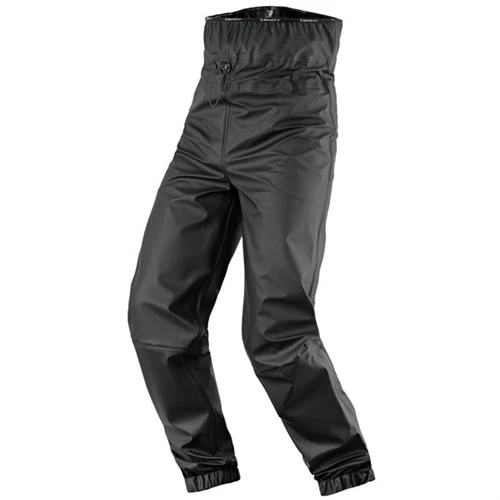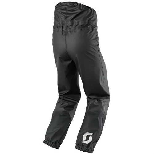 The pants sit high; in fact they come right up to the chest, and have the appearance more of a fisherman’s wader than a motorcycle pant. They are not sexy looking, but the benefit of the way they fit is that when worn beneath a Scott jacket there is absolutely no way that the rain is ever going to be able to seep under the hem of the jacket and over the waistband of the trouser. Once on, there’s a drawstring arrangement that allows to to tighten the fit.