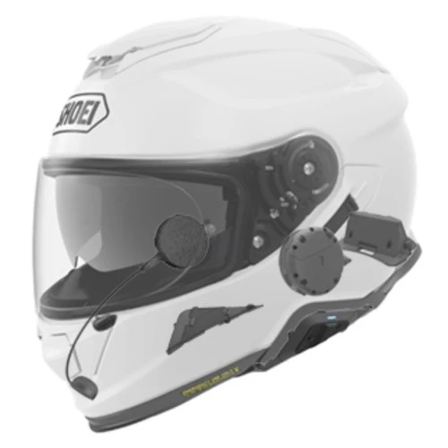 The Sena SRL2 Bluetooth communication system was jointly developed by Sena and SHOEI specifically for the new SHOEI Neotec 2, GT Air 2 and J-Cruise 2 helmets. As with the Sena comms. unit in the Shoei Neotec 2, the SRL2 slots seamlessly into the helmet. All the routes for the cables are pre-channelled, the speakers clip into their prescribed slots, and the control unit and aerial simply replace the triangular plastic panels on either side of the helmet. This means that there’s no ugly unit on the side of the helmet; a unit that would only serve to increase wind noise.The SRL2 is based on Sena’s top-of-the-range 20s model. You can talk to up to seven other riders, or pair it to a phone to take calls or listen to music. It is estimated that the talk distance is around a mile. Obviously, you can also connect to a GPS unit to hear directions. If you’re clever enough, you can operate the intercom using voice commands. There’s an FM music channel, and the whole system has been designed to be compatible with non-Sena units, whilst Sena’s Advanced Noise Control technology also acts to cut out wind and road noise. If you order your comms. unit at the same time as a helmet, you will save the 20% VAT, because helmets are zero rated.